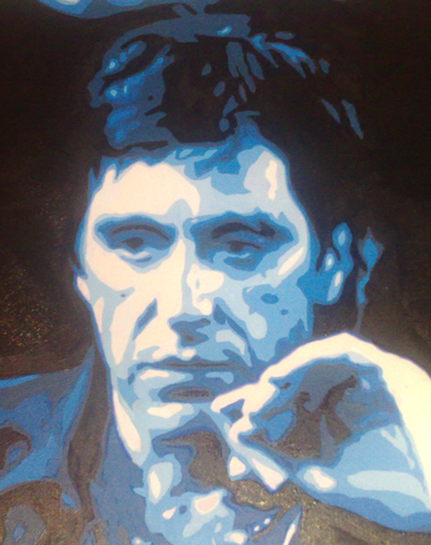 LIMITED ART PRINT Title: Scarface Painting on canvas Date: 2009 Artist: Paul Matchett Medium: Painting on gisclee canvas Colour: black, red, white. Support: Gallery wrapped canvas Size: 32 x 16 inches Price: £69.99 GBP (FREE delivery to the UK only). see delivery